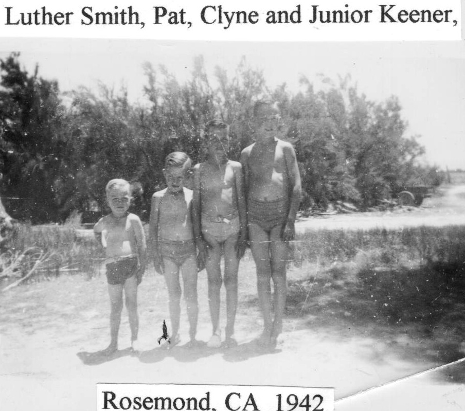 My mother told me aunt Ora wrote several times asking us to come to California. My dad worked for Gulf Oil in Oklahoma and was not interested, that is until our house burned to the ground. Uncle Gordon worked for Richland Bentonite Co. and had a job waiting for dad. So after donations of bedding and clothing etc. my parents Henry Aaron (born 5-28-1909), wife Johnnie Bonnie Keener (born 1-26-1907) and four boys, sometime in 1938, headed the model A Ford towards Rosamond, California .