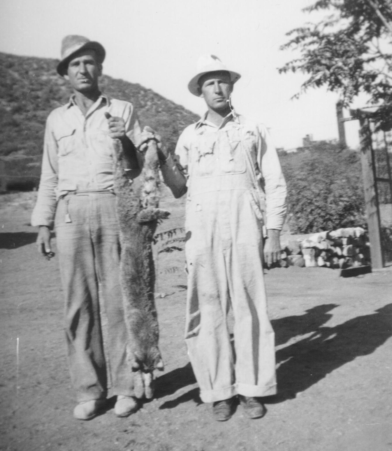 One day Dad just happened to look out the kitchen window and see a large bobcat sitting behind a bush next to the path. Dad quickly grabbed the 22 rifle, called Pat back and got off one shot wounding the bobcat. Dad and Uncle Gordon hunted it down and killed it. I guess the cat wasn't interested in us big folks. It was just the right size for breakfast.